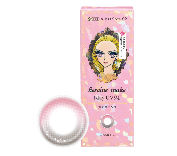 ヒロインメイク1day UV Mはメイクブランド「ヒロインメイク」との共同開発です。 保存液に天然保湿成分「アルギン酸」を配合し、たっぷりうるおう保水力を実現。 色とサイズのバランスを緻密に考え、大きめの虹彩径13.4mmでも使い易いデザインのレンズです。